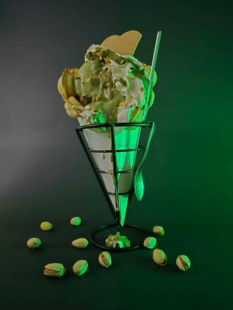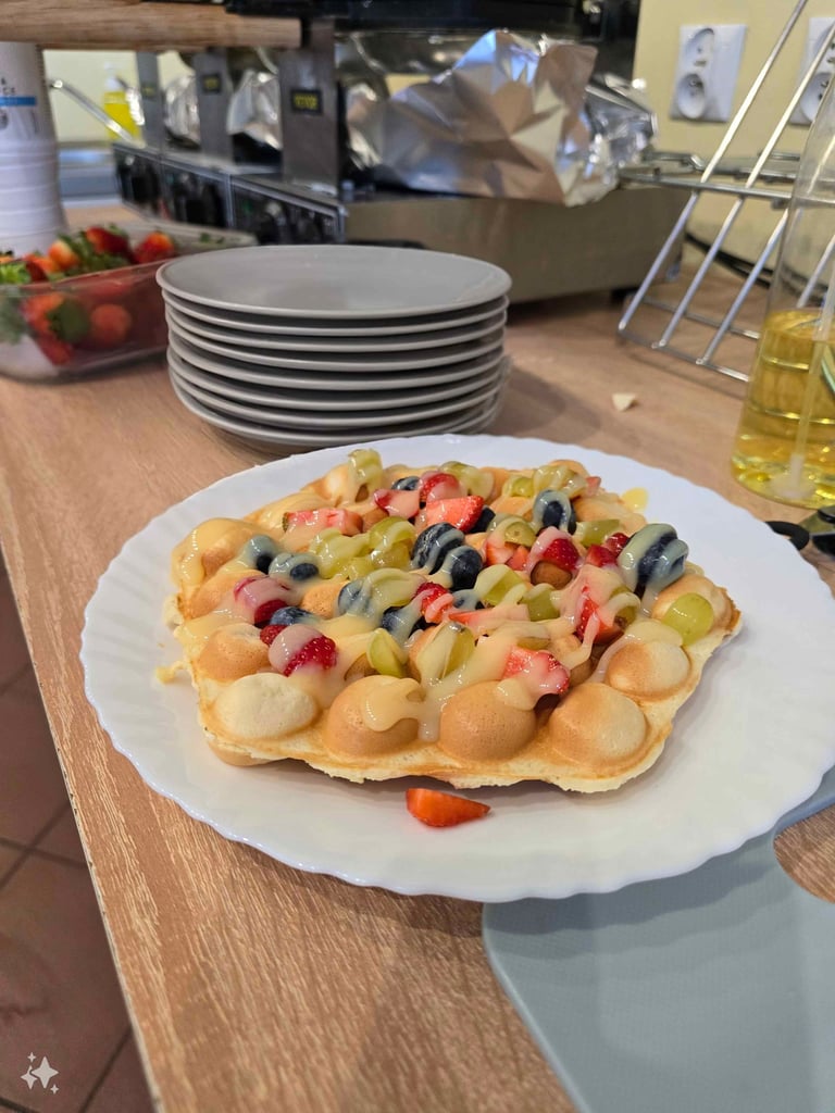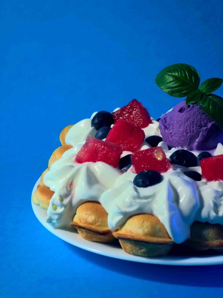Spróbuj naszych chrupiących gofrów bąbelkowych z pysznymi dodatkami.